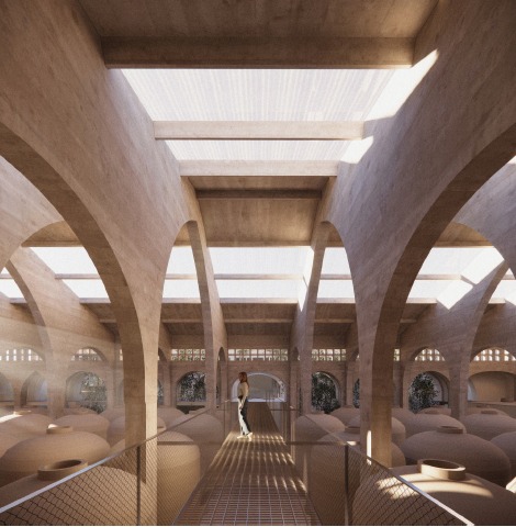Un dels espais més emblemàtics és la nau principal de l’antic celler, dominada per imponents tines de formigó de gran alçada. Aquí el projecte preveu passarel·les lleugeres per poder veure les tines des de diferents punts de vista, així com tot un recorregut museístic.