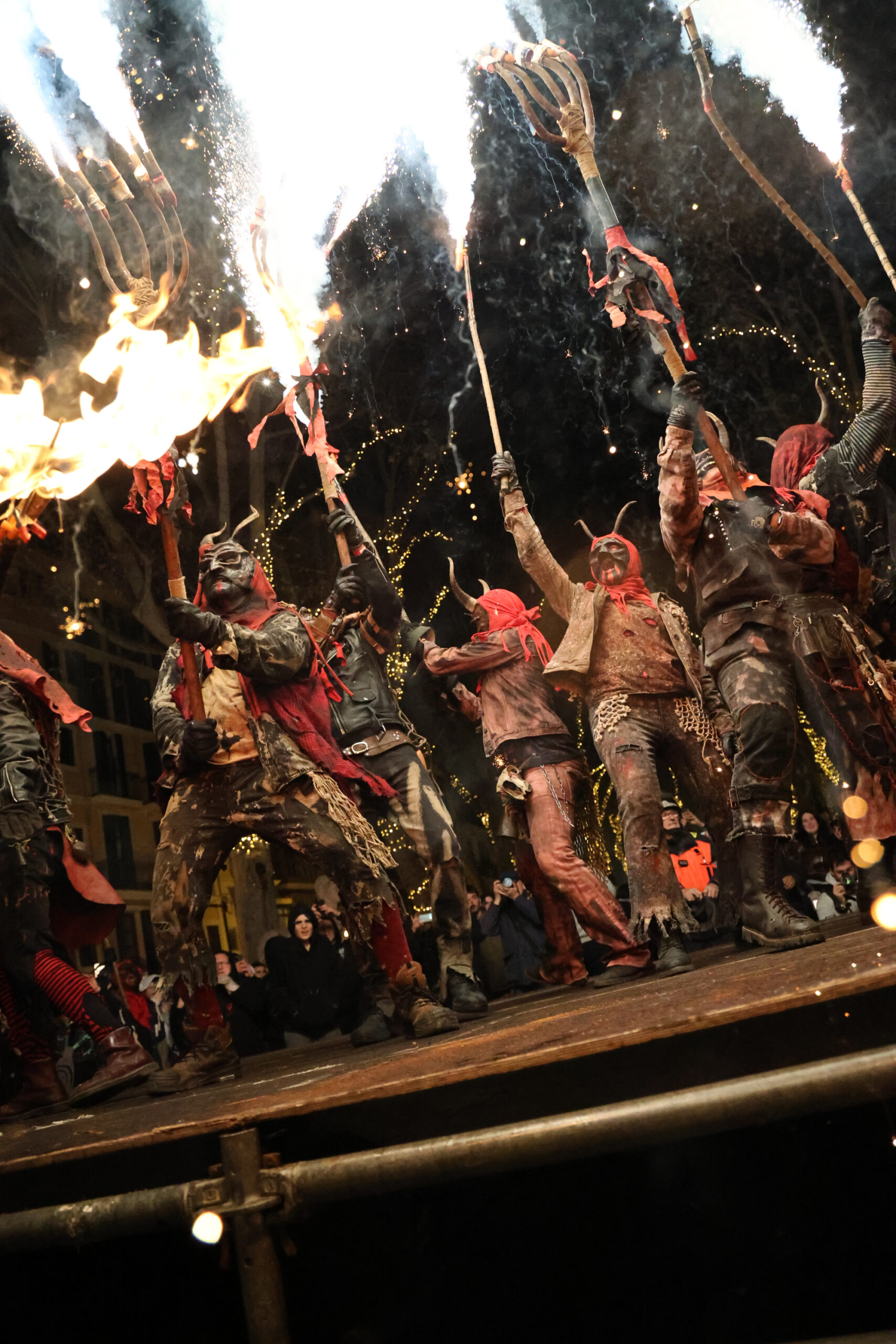 32El Correfoc de Sant Sebastià ha omplit aquest diumenge algunes de les principals vies del centre de Palma de foc i de dimonis. A les 19.00 hores, el correfoc s’ha iniciat a la plaça de la Reina, amb la participació de les colles de dimonis Drac i Guardians de Sant Jordi, Realment Cremats, s’Òliba de la Real, Es Drac de na Coca i Ses Germanies.