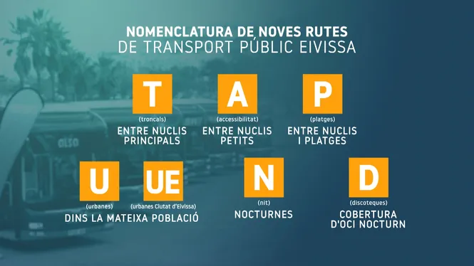 L’entrada en marxa de la nova contracta, que passa de 53 a 62 noves rutes, que comportarà el canvi de nomenclaturaque respon als seus punts d’origen o de destinació. Segons siguin línies de nuclis més (T) o menys poblats (A), urbans(U) o urbans dins la capital (UE), nocturns (N) o que connectin amb platges (P) o destinacions d’oci nocturn (D). En el cas dels busos cap a l’aeroport, passaran a dir-se AERO.