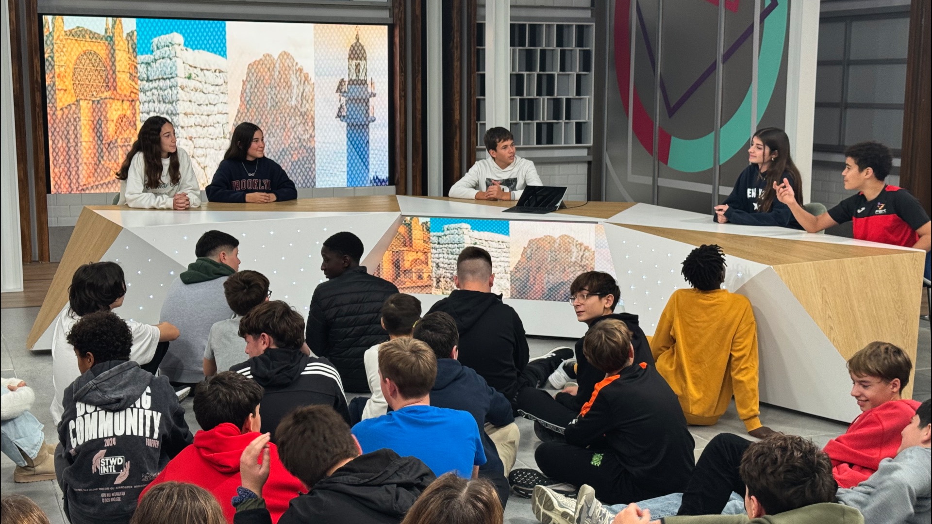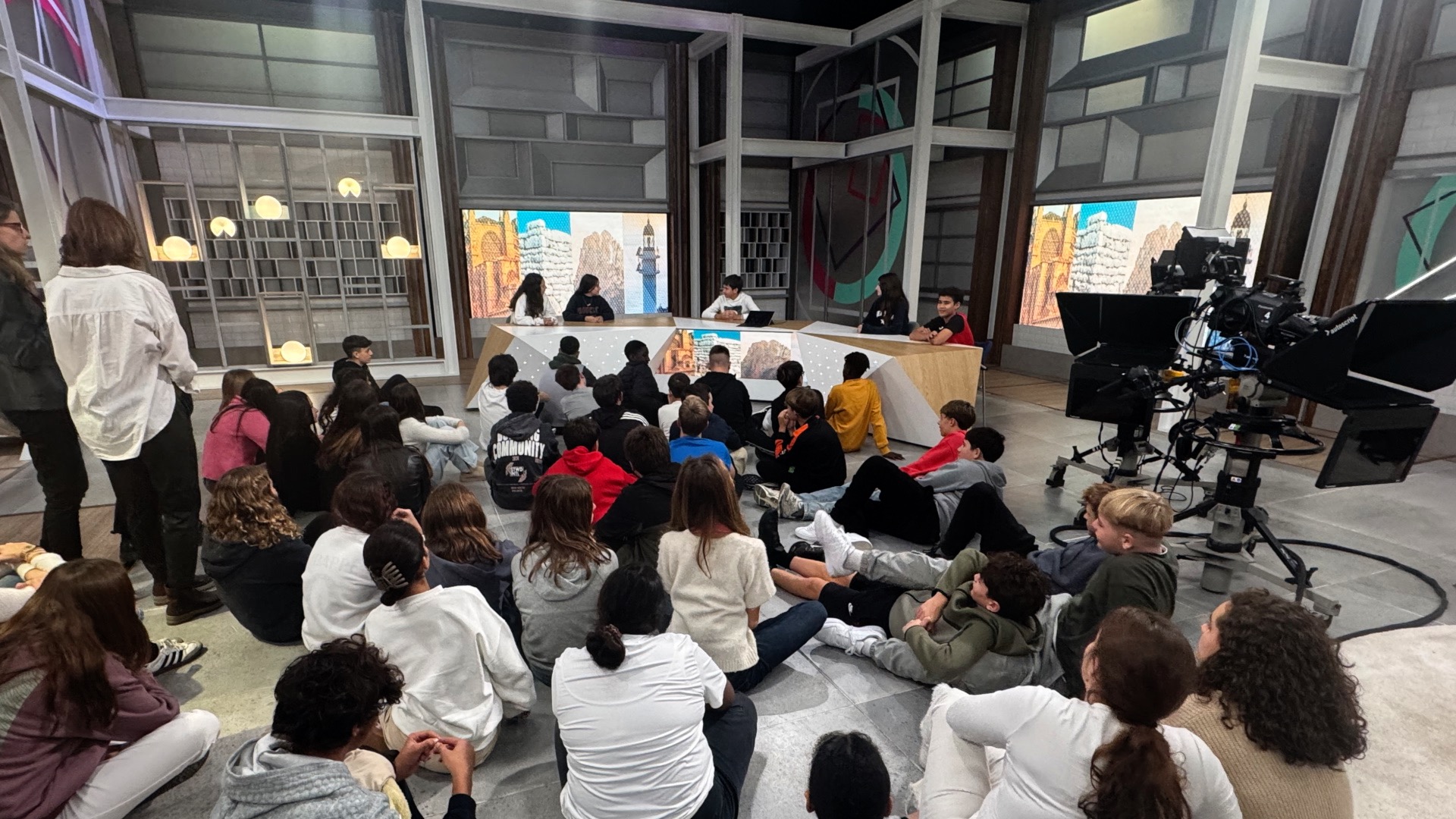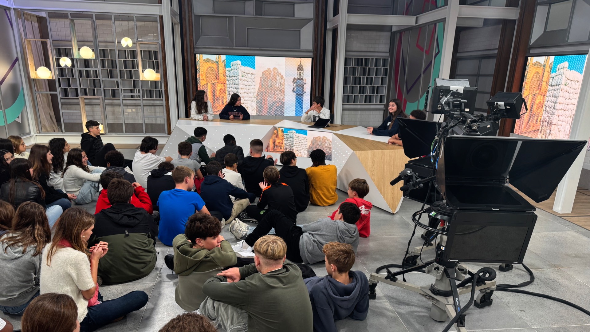 Els escolars varen conèixer d’aprop les instal·lacions d’IB3 Televisió i varen descobrir la tasca dels periodistes i professionals de la casa.