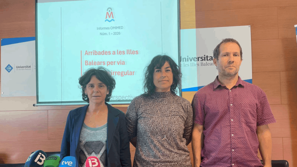 Presentació del primer informe de l’Observatori de Migracions a la Mediterrània (OMIMED) de la Universitat de les Illes Balears amb Margalida Capellà, Inés Marco i Marco Aparicio.