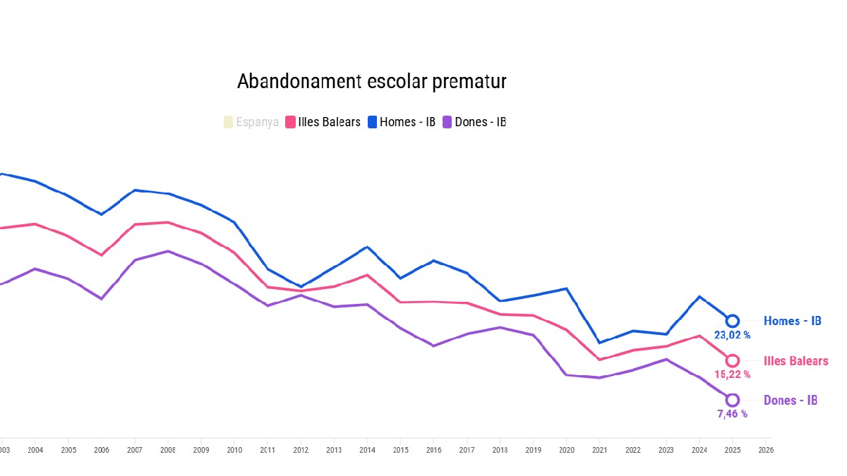 La taxa d'abandonament educatiu prematur dels homes triplica la de les dones