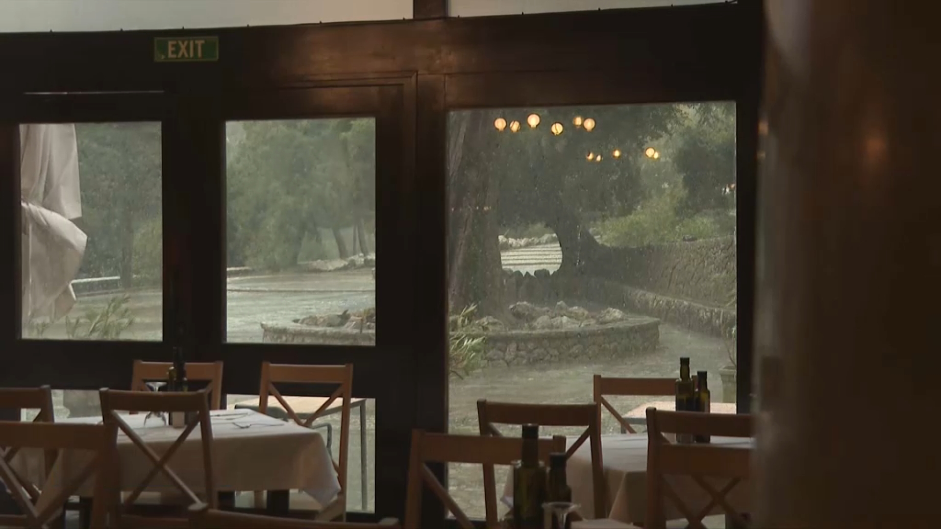 Les ratxes han arribat als 70 quilòmetres per hora. S'ha vist en unes imatges de com el vent feia volar les taules i cadires de la terrassa del restaurant de l'hostaleria de Lluc
