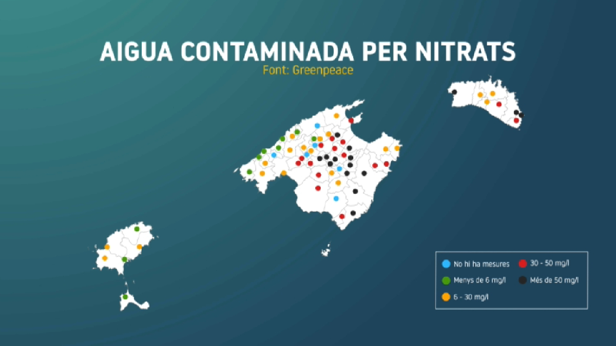 En alguns punts de Mallorca i Menorca, la concentració de nitrats, perjudicials per a la salut, supera el límit legal actual, 50 mg/l