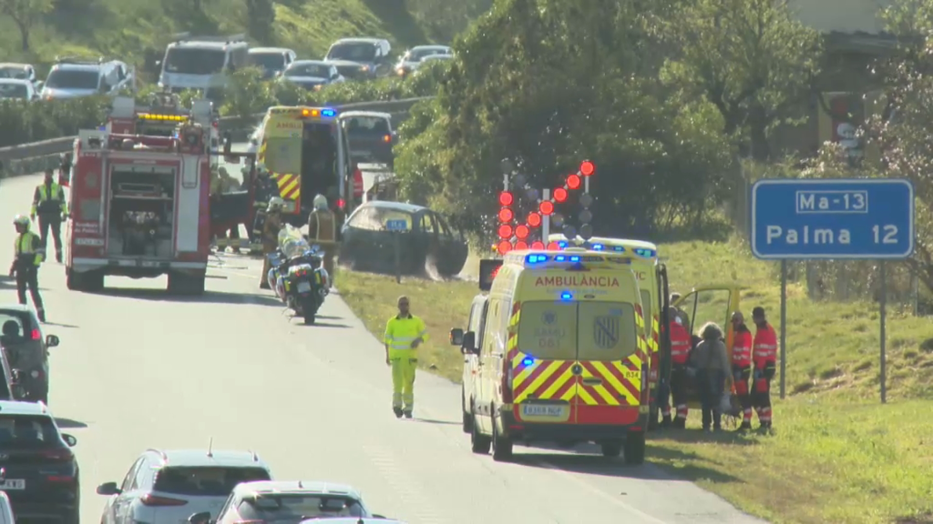 Fins al lloc dels fets s’hi han desplaçat efectius d’emergències, que han extingit les flames i han assegurat la zona. L’accident ha causat retencions importants en direcció a Palma. La circulació s’ha vist afectada mentre es retirava el vehicle sinistrat i es netejava la via. A hores d’ara, el trànsit ja està restablert.